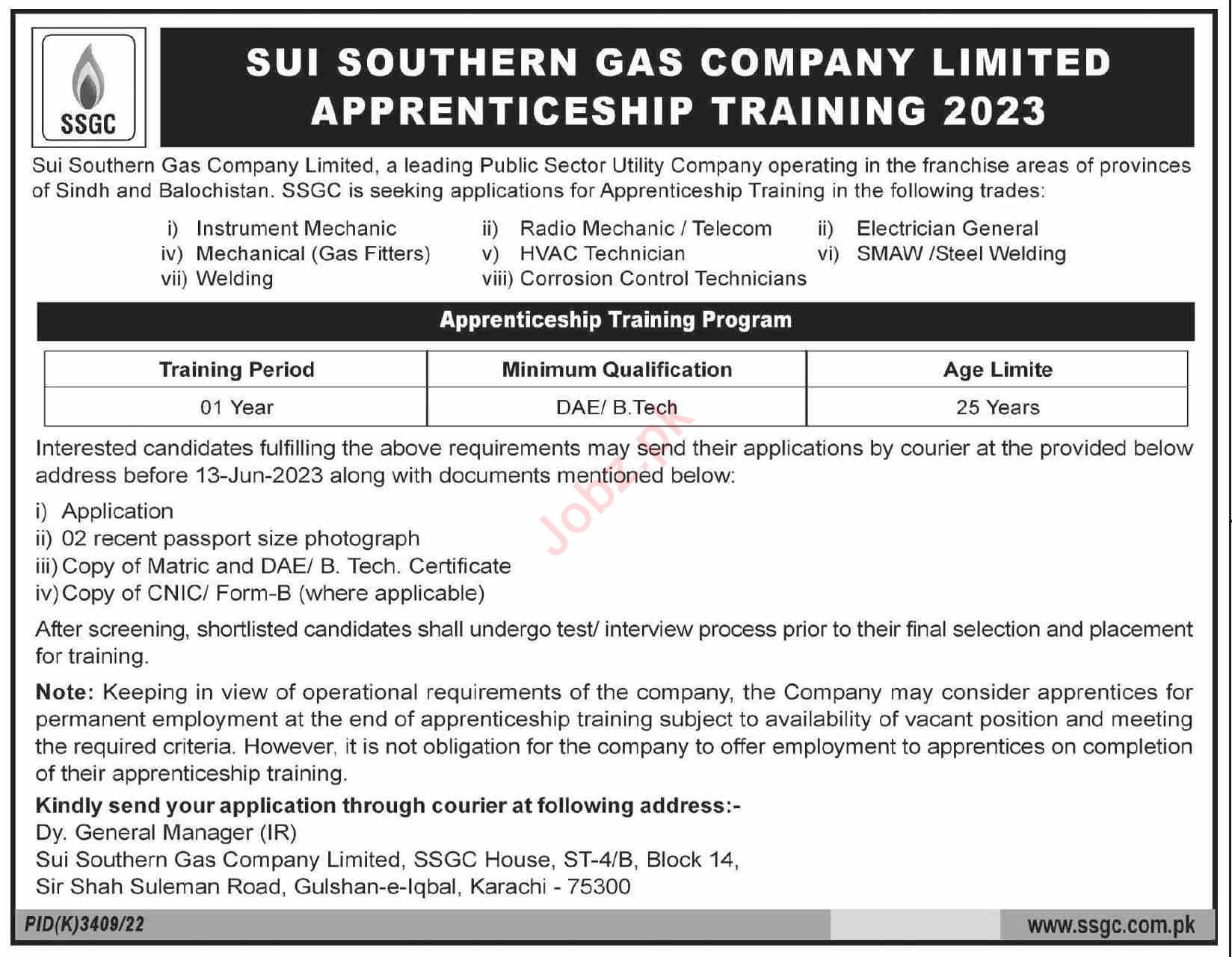 Vacant posts including corrosion control technician, welding, instrument mechanic, radio mechanic, steel welding, hvac technician, mechanical gas fitter and electrician general are announced in Sui Southern Gas Company Limited SSGC Karachi, karachi Sindh Pakistan as per 28 May 2023 advertisement in daily Dawn Newspaper. Candidates with DAE, B.E and Bachelor etc. educational background will be preferred.