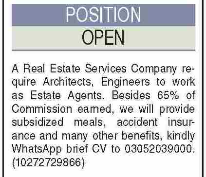 Real Estate Company invites applications for job positions advertised in daily Dawn dated 7 June 2024 for following vacancies in Karachi, karachi Sindh Pakistan.
