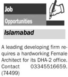 Private Firm Islamabad, islamabad Islamabad Pakistan invites applications from eligible candidates for the post of female architect and architect as per advertisement of May 4, 2023 published in daily The News Newspaper. Educational qualifications required Bachelor and B.E etc.