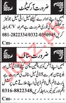 Architect & Lady Secretary Jobs 2020 In Quetta