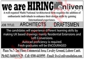 Vacant posts including architects and draftsman are announced in Enliven Solutions Limited Lahore, lahore Punjab Pakistan as per 3 December 2023 advertisement in daily Jang Newspaper. Preferred Education is Bachelor and DAE etc.
