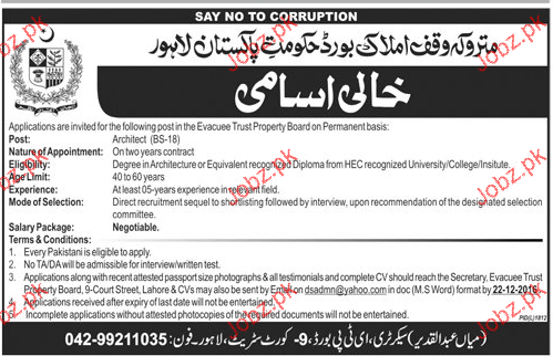 Apply as per details in job advertisement. Login to view further details of how to apply via https://www.jobz.pk online.
