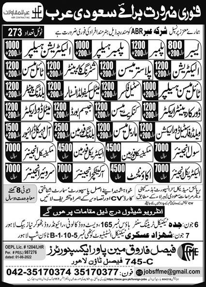 Shahzad Askari Technical Institute is looking for candidates for following posts as per job advertisement published in daily Express Newspaper of June 3, 2022 for location Riyadh, riyadh Saudi Arabia: