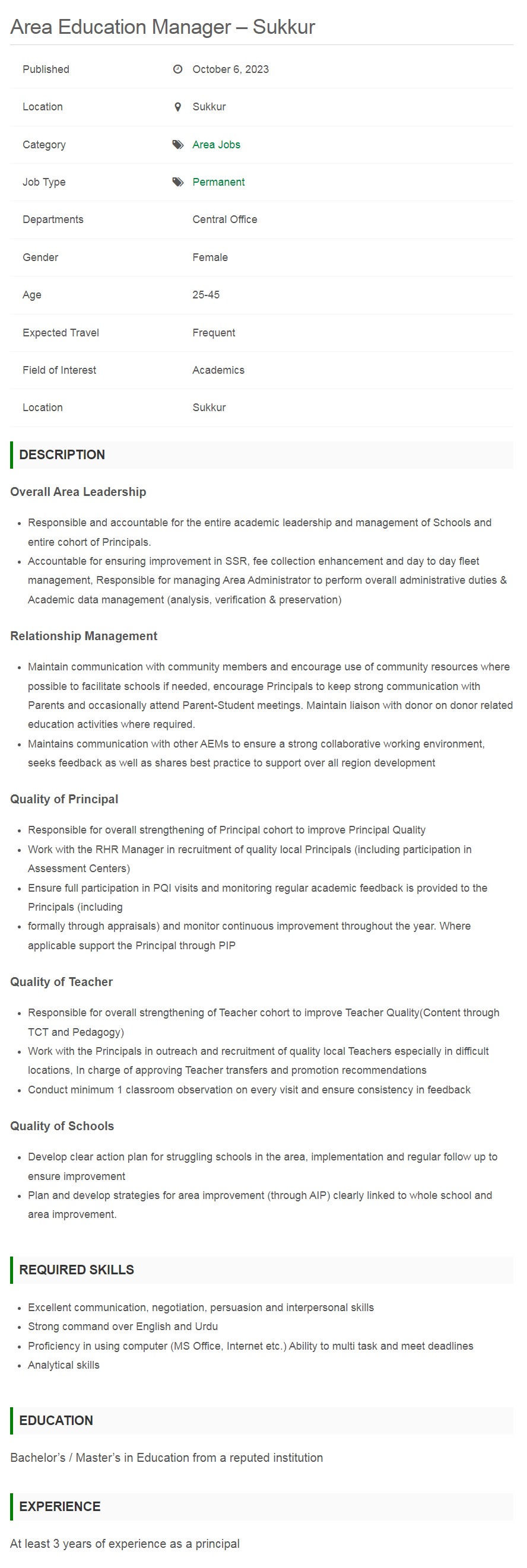 Original Source: https://careers.tcf.org.pk/job/area-education-manager-sukkur/