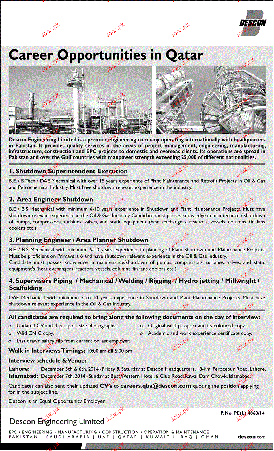 Apply as per details in job advertisement. Login to view further details of how to apply via https://www.jobz.pk online.