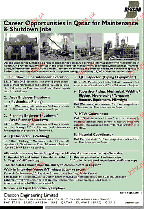 Area Engineer Shutdown, Planning Engineers Job Opportunity