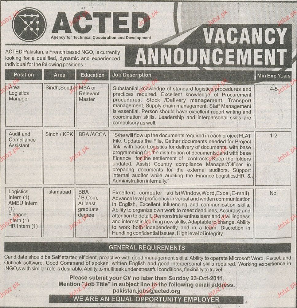 Apply as per details in job advertisement. Login to view further details of how to apply via https://www.jobz.pk online.