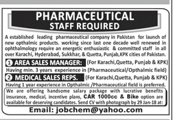 Latest Pharmaceutical Company Sales Posts Karachi 2025