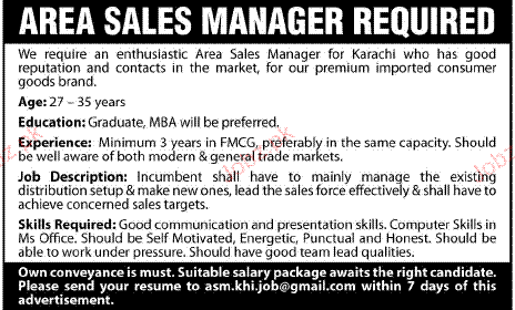 Area Sales Manager Job Opportunity