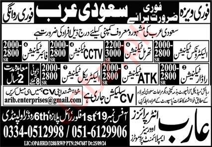 Arib Enterprises OEP invites applications for job positions advertised in daily Express dated 30 September 2024 for following vacancies in Riyadh, riyadh Saudi Arabia.