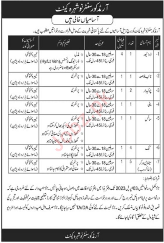 Armed Core Centre invites applications for job positions advertised in daily Mashriq dated 19 March 2023 for following vacancies in Nowshera, nowshera Khyber Pakhtunkhwa KPK Pakistan.