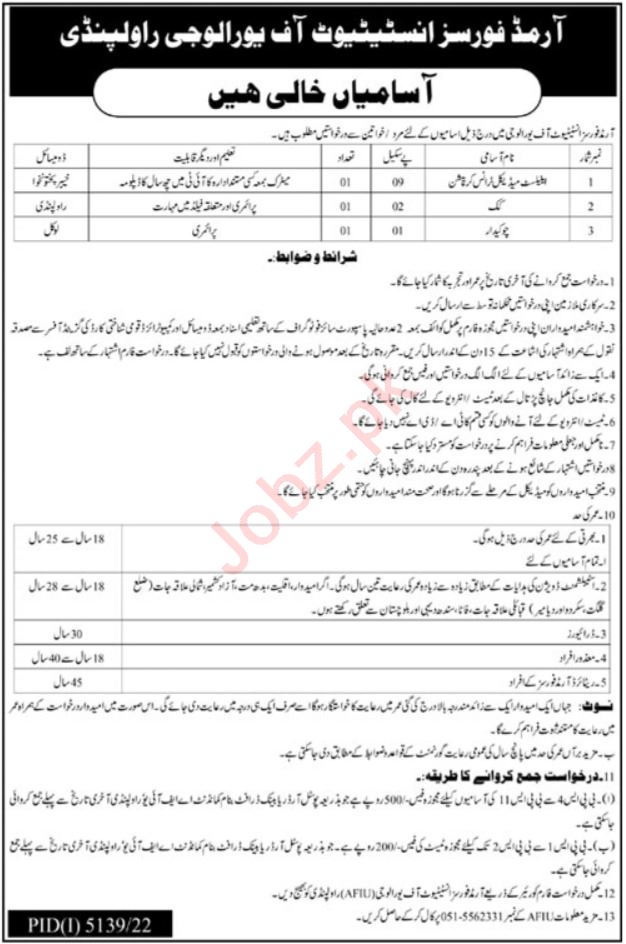 Vacancies in Armed Forces Institute of Urology AFIU Advertisement February 2023