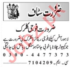 Army Clerk & Clerk Jobs 2021 In Lahore