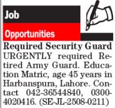 Army Guard & Security Guard Jobs 2025 in Lahore