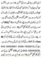 Apply as per details in job advertisement. Login to view further details of how to apply via https://www.jobz.pk online.