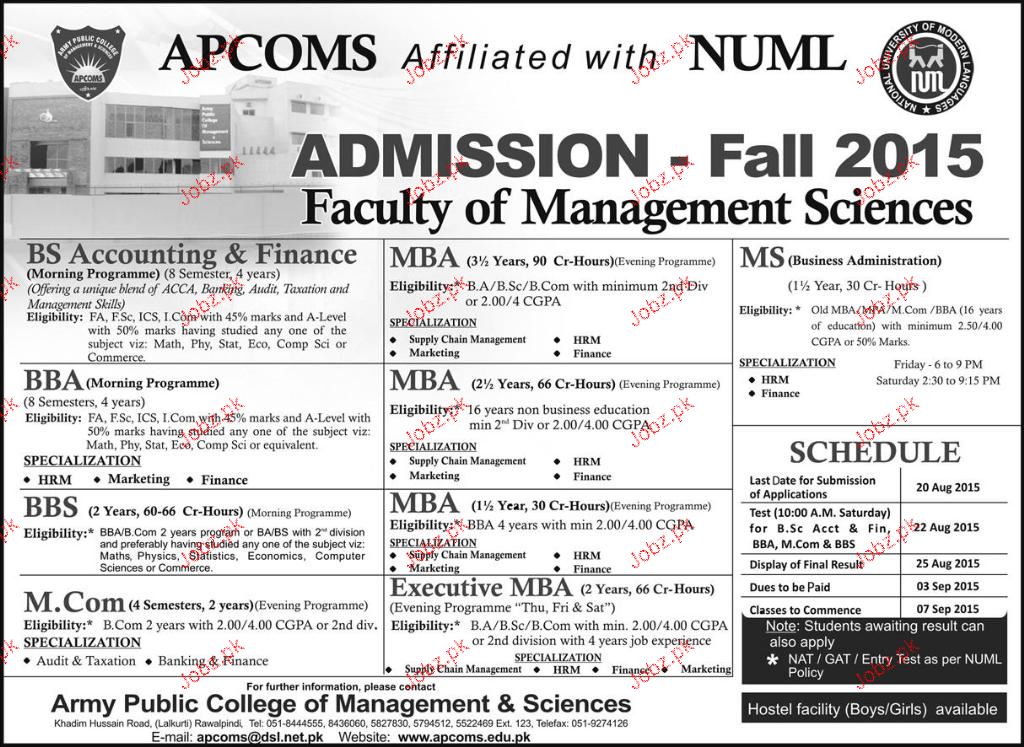 Army Public School and College Admission in Class BS,BBA abd BS in Rawalpindi. Read newspaper ad for exact details.