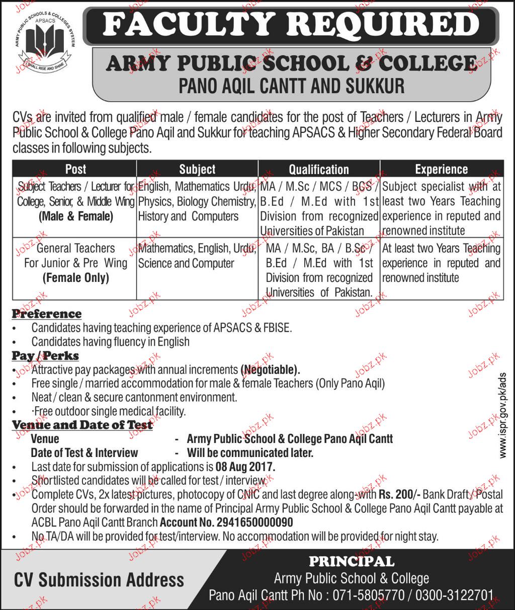 Latest Army Public School APS Teaching Posts Sukkur 2025