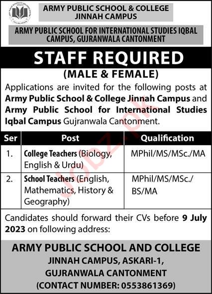 Vacancies in Army Public School & College APS&C Advertisement June 2023