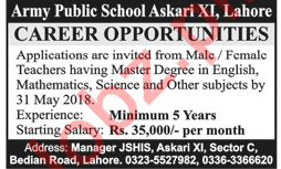 Latest Army Public School APS Teaching Posts Lahore 2025