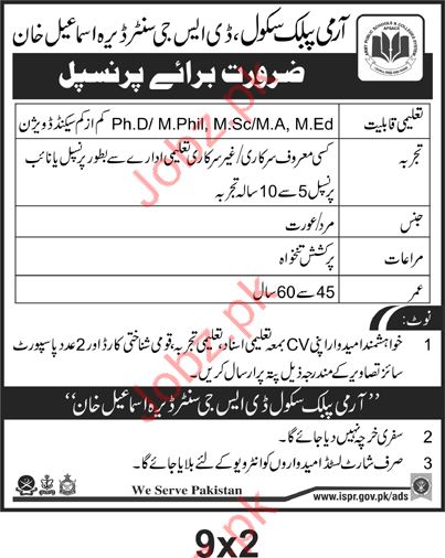 Latest Army Public School APS Teaching Posts Dera Ismail Khan 2025