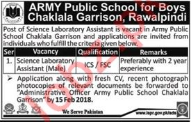 Army Public School APS Rawalpindi Jobs 2018 Lab Assistant