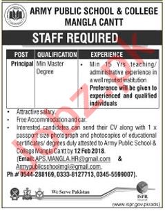 Latest Army Public School & College APS&C Teaching Posts Mangla 2025