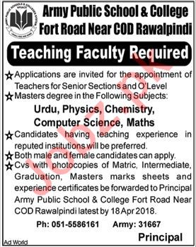 Army Public School & College APS & C Rawalpindi Jobs 2018