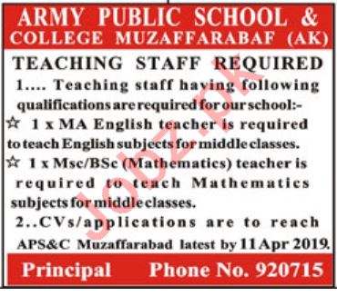 Army Public School & College APS&C Muzaffarabad Jobs 2019