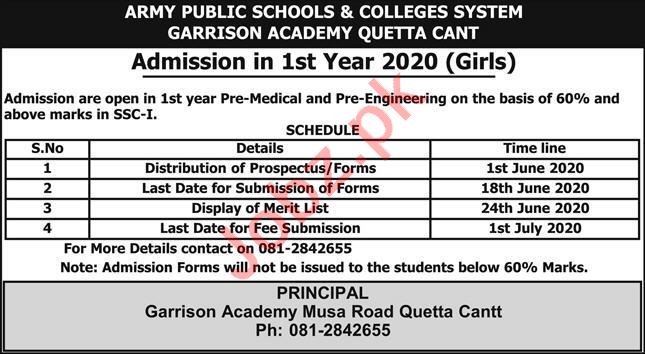 Army Public School & College APS&C Quetta Admissions 2020