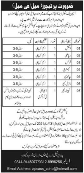Vacancies in Army Public School & College APS&C Advertisement January 2021