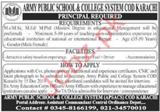 Vacancies in Army Public Schools & Colleges System Secretariat Advertisement November 2019