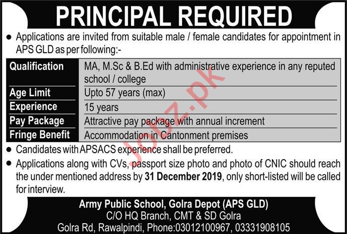 Latest Army Public School APS Education Posts Rawalpindi 2025
