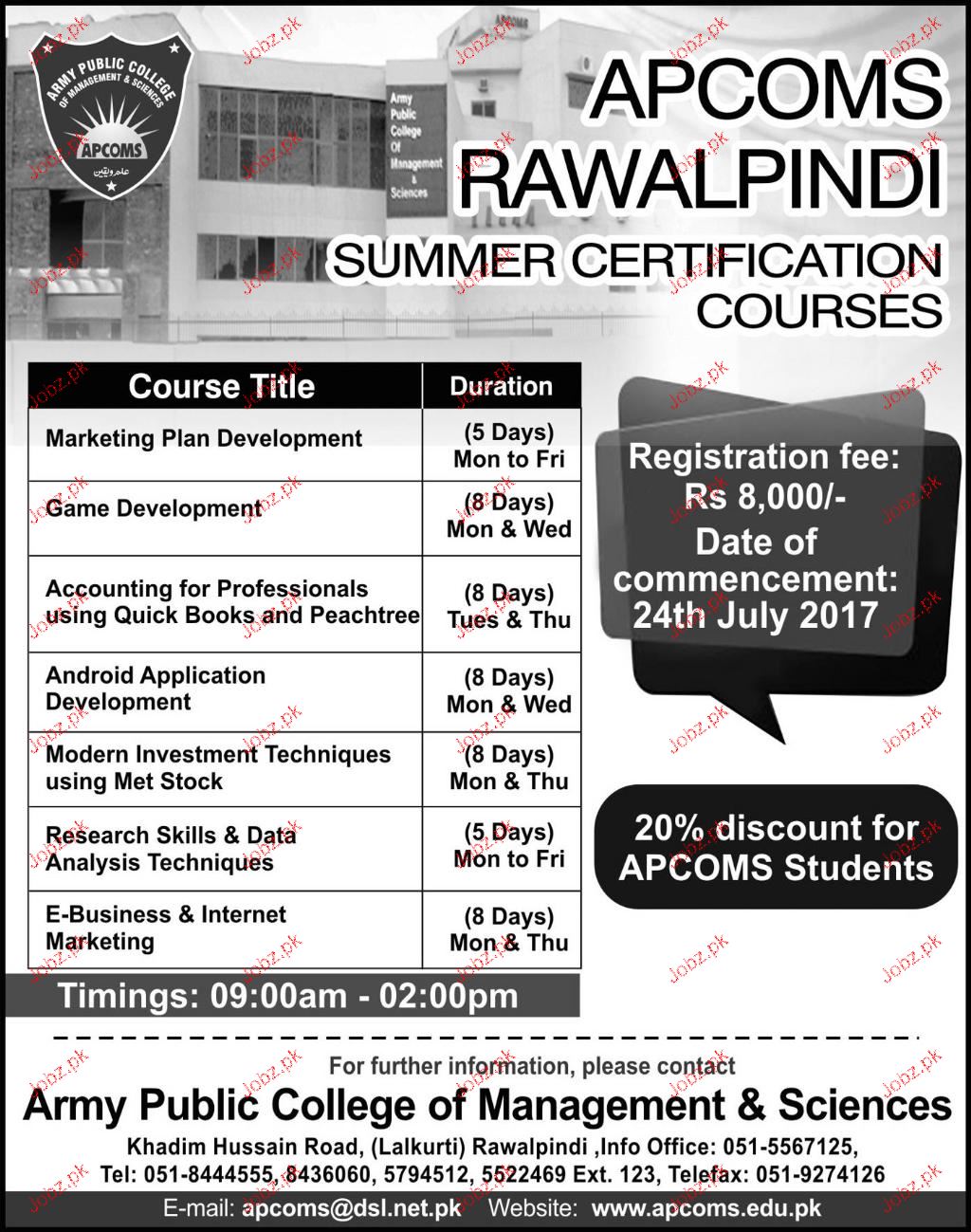 Army Public School of Management and Sciences Admission in Courses in Rawalpindi. Read newspaper ad for exact details.