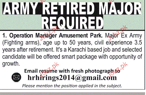 Army Retired Major Job Opportunity
