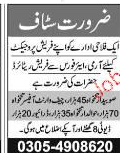 Apply as per details in job advertisement. Login to view further details of how to apply via https://www.jobz.pk online.