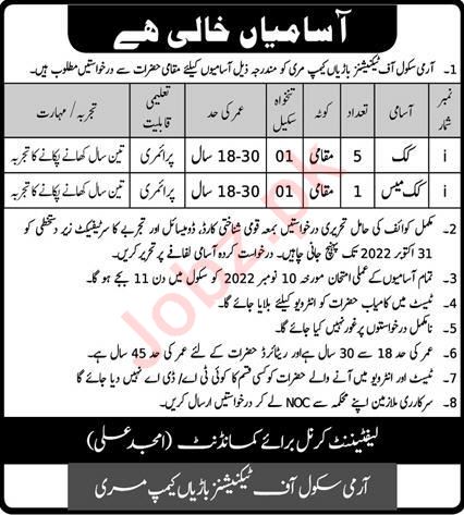 Army School of Technicians Barian invites applications for job positions advertised in daily Express dated 2 October 2022 for following vacancies in Murree, murree Punjab Pakistan.