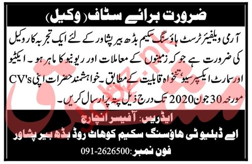 Latest Army Welfare Trust Legal Posts Peshawar 2025