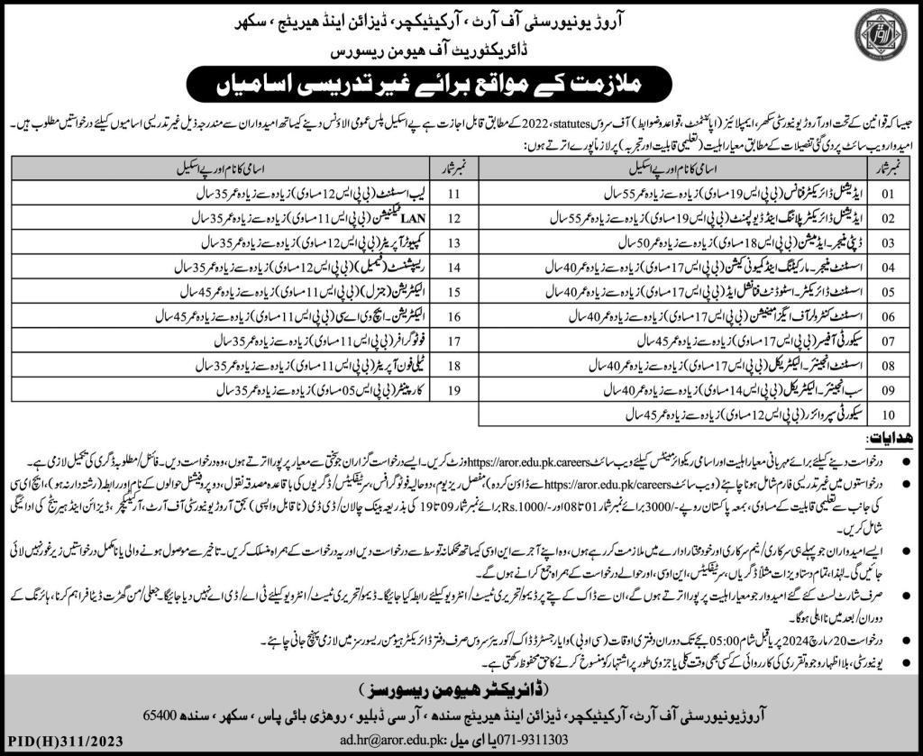 Vacancies in Aror University of Art Architecture Design & Heritage Advertisement March 2024