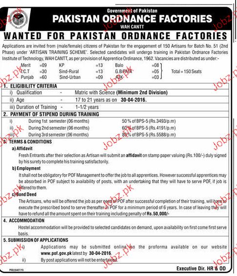 Apply as per details in job advertisement. Login to view further details of how to apply via https://www.jobz.pk online.