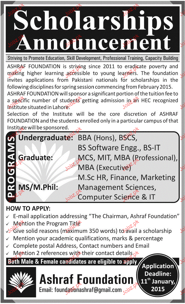 Ashraf Foundation Admission in BBA, BS, MCS, MBA and MSc in Lahore. Read newspaper ad for exact details.