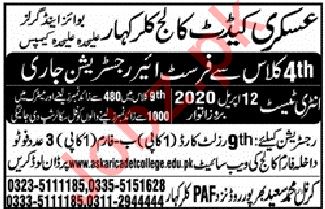 Askari Cadet College established by Pakistan Army invites applications for Admissions 2020 for Class 4th to 1st Year in Kallar Kahar. All student submit their admissions form before last date. Read newspaper ad for exact details.