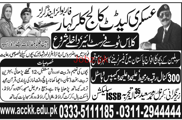 Askari Cadet College Kallar Kahar Chakwal Admission in