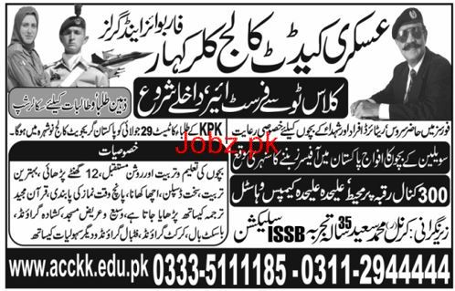 Askari Cadet College for Boys and Girls Kallar Kahar Chakwal Admission in Class II to XI in Kallar Kahar Rawalpindi. Admission Open for Both Male / Female Students Read newspaper ad for exact details.