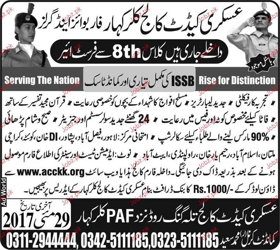 Askari Degree College Admission in Class VIII in Kallar Kahar. Read newspaper ad for exact details.