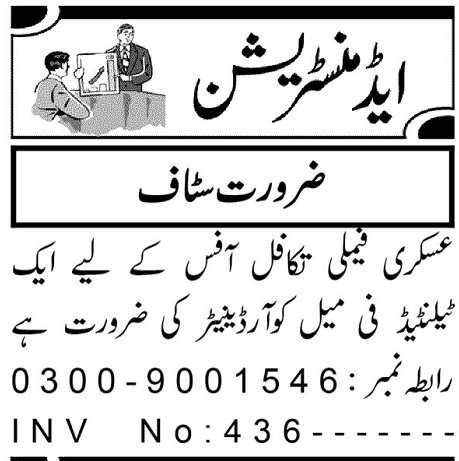 Askari Family Takaful Peshawar, peshawar Khyber Pakhtunkhwa KPK Pakistan invites applications from eligible candidates for the post of female coordinator and coordinator as per advertisement of November 21, 2024 published in daily Aaj Newspaper. Bachelor, BA and Intermediate etc. educational qualification will be preferred.