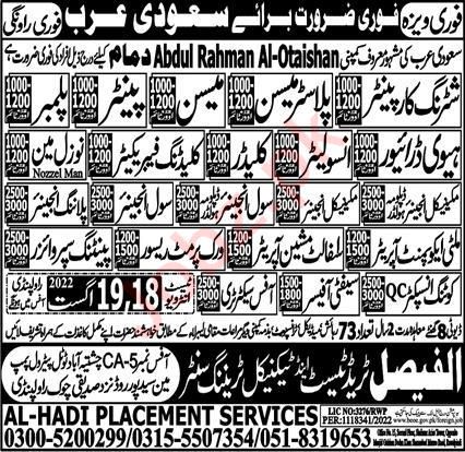 Latest Al Hadi Placement Services Industrial Posts Riyadh 2025