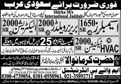 MYB International invites applications for job positions advertised in daily Express dated 22 April 2022 for following vacancies in Jeddah, jeddah Saudi Arabia.