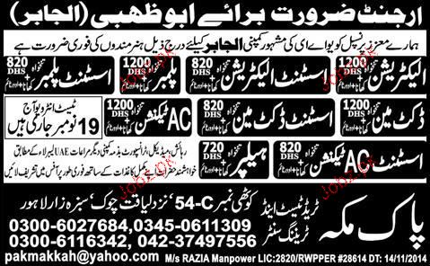 Assistant AC Technicians, Assistant Plumbers Wanted