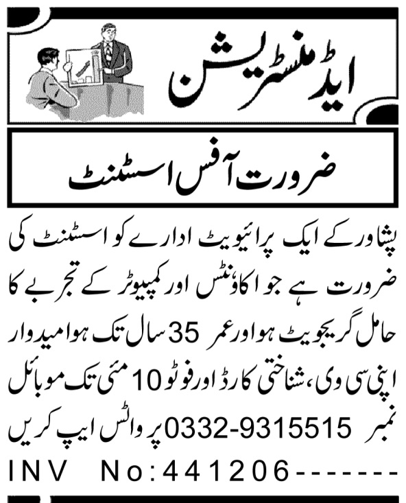 Vacant posts including account assistant and assistant are announced in Private Company Peshawar, peshawar Khyber Pakhtunkhwa KPK Pakistan as per 2 May 2025 advertisement in daily Aaj Newspaper. Bachelor, Intermediate and B.com etc. educational qualification will be preferred.