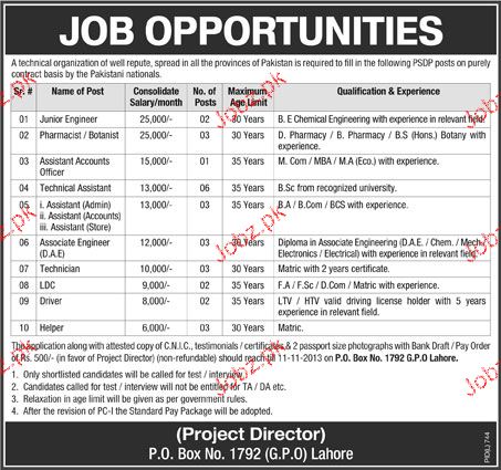Apply as per details in job advertisement. Login to view further details of how to apply via https://www.jobz.pk online.